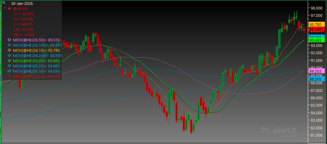 April Lean Hogs posted a new contract high this week. Resistance is at 96.400 and then the contract high of 97.550. Support is at 94.675 followed by the 20-day MA of 93.675.