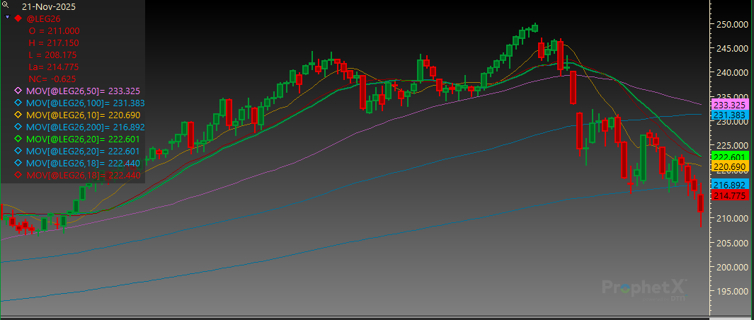 February Live Cattle finished lower every day this week. Support is at today’s low of 208.175 followed by 206.250. Resistance is at the 200-day MA of 216.900 and then the 20-day MA of 222.600.