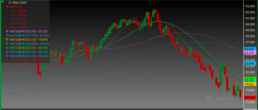 February Lean Hogs posted a new low for the move today. Support is at today’s low of 77.625 and then 77.200. Resistance is at 79.475 followed by 80.675.