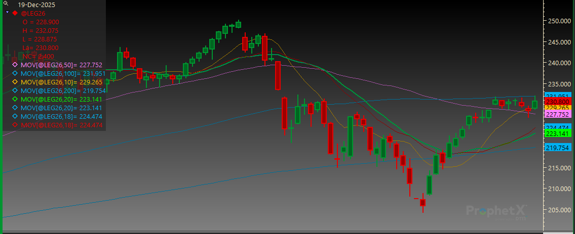 February Live Cattle tested the 100-day MA today. Resistance is at the 100-day MA of 231.950 and then today’s high of 232.075. Support is at 226.850 and 225.650.