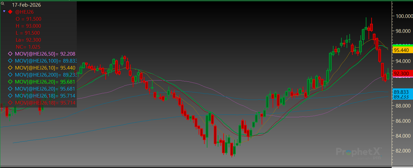 April Lean Hogs broke their seven day losing streak today. Support is at 91.125 and then 90.025. Resistance is at 93.750 and then the 20-day MA of 95.675.