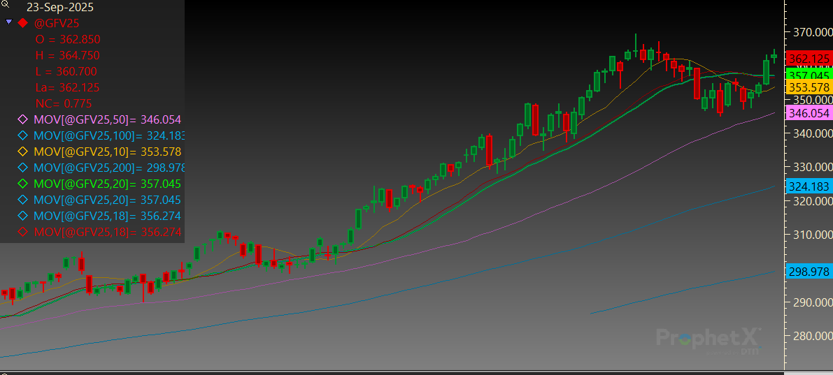 Feeder Cattle: Feeder Cattle futures saw big gains to start this week and followed with slight gains Tuesday. Over the weekend, it was reported that there was a confirmed case of Screwworm only 70 miles from the U.S. border. This news hampered any thoughts that the U.S. and Mexico were nearing a reopening time line of the border. The deferred Feeder Cattle futures were locked up the limit by the middle of the trading session and most months never traded off of that level. The spreads within the futures contracts had continued to hold a premium in the nearby contracts due to the potential of the border opening and more supplies being available to U.S. feedlots in the future, particularly into 2026. The deferred contracts have gained substantially on the front months the last two days as that supply does not look to be coming for the United States. Also, in the news Monday, was a very vague plan that the government would incentivize cow-calf producers to retain heifers and begin to rebuild the U.S. cow herd. More details will be released in the future, but this would limit the number of heifers available for the feedlots to purchase and further down the road, cattle available for slaughter.